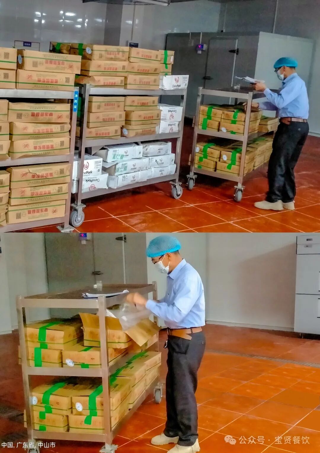 1.食材分揀、入庫 寶賢央廚配備獨立的保鮮庫和冷庫,蔬菜放置保鮮庫保存,肉類、水產類放置冷庫保存,等待領料進行下一步的加工。