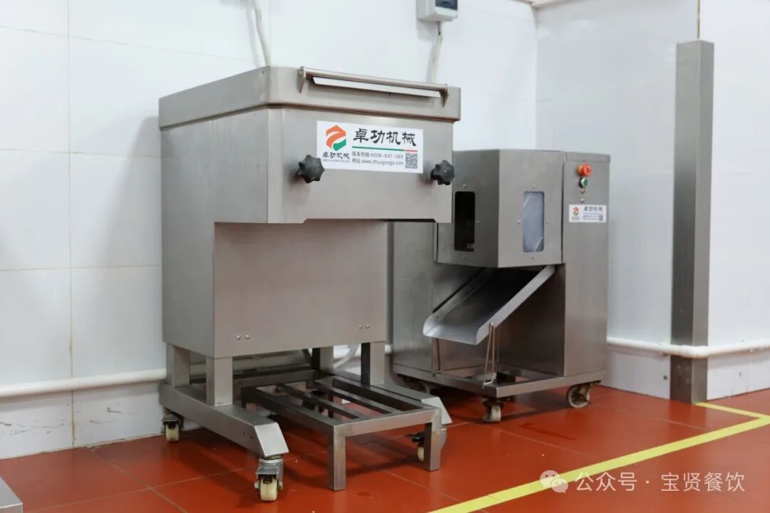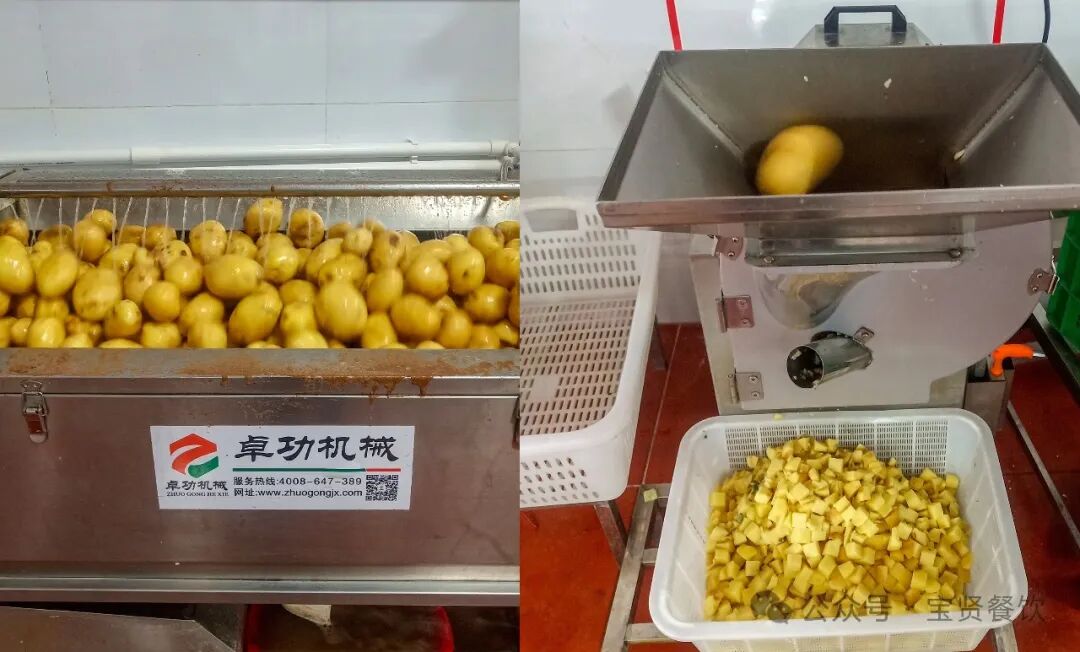 2.根莖加工 除了人工切配,寶賢央廚還配備了去皮機和切丁機,可自動化切菜,切成塊、條、絲等形狀,節省了人工切配的大部分時間,有效地提高工作效率。