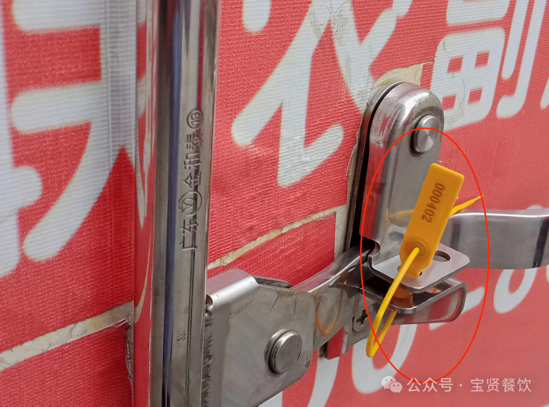 1.裝車 寶賢央廚自有配送車隊,裝車前對每輛運輸車輛的車廂進行清潔、消毒,然后按保溫箱的標簽進行裝車,裝車后車門加密封帶,確保運輸途中沒被開啟過。