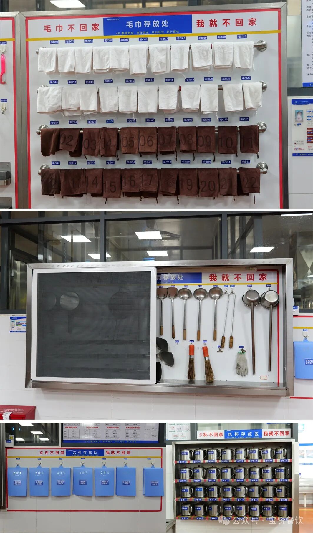 ![]() “4D食品安全現場管理體系”是目前國內餐飲業較為認可的一種餐飲酒店現場管理體系。 寶賢餐飲在中央廚房、智慧餐廳等板塊率先導入并推行4D管理,通過將廚房管理細分化、規范化、明晰化,確保責任到人、工作到崗,做到“整理到位、責任到位、執行到位、培訓到位”,以更現代化、系統化、科學化的管理模式,實現了從“廚房重地,禁止入內”到“明廚亮灶,歡迎光臨”的轉變。